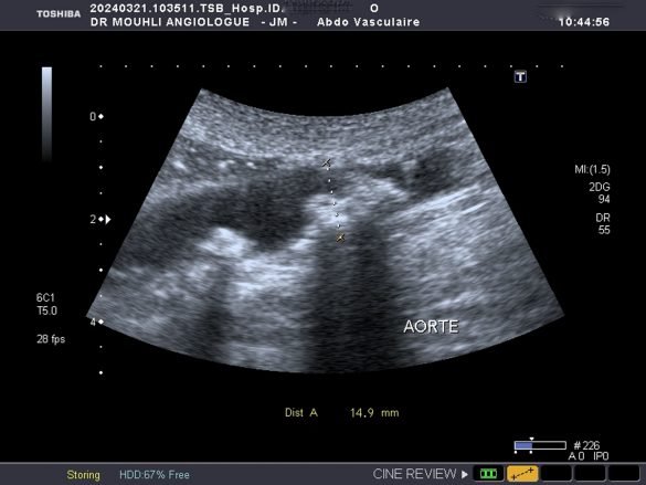 L’écho-doppler artériel est souvent la première étape dans l’évaluation des thromboses aortiques. Cette technique utilise des ultrasons pour visualiser le flux sanguin et détecter toute obstruction ou anomalie dans l’aorte. L’écho-doppler permet non seulement de confirmer la présence d’une thrombose mais aussi d’évaluer sa taille et son emplacement précis. Toutefois, cette méthode peut être limitée par la qualité de l’image obtenue, surtout chez les patients ayant une anatomie complexe ou de l’athérosclérose avancée.